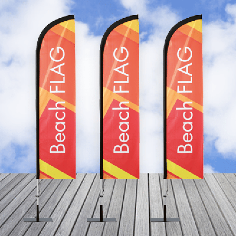• Le beach flag : idéal pour véhiculer votre communication estivale au bord de la plage