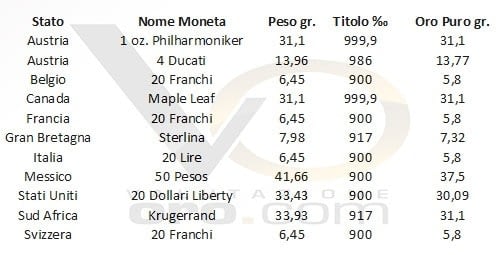 En ce qui concerne les pièces destinées à l’investissement, leur pureté oscille généralement entre 20 et 24 carats. Voici un aperçu des caratages les plus répandus, selon les monnaies.